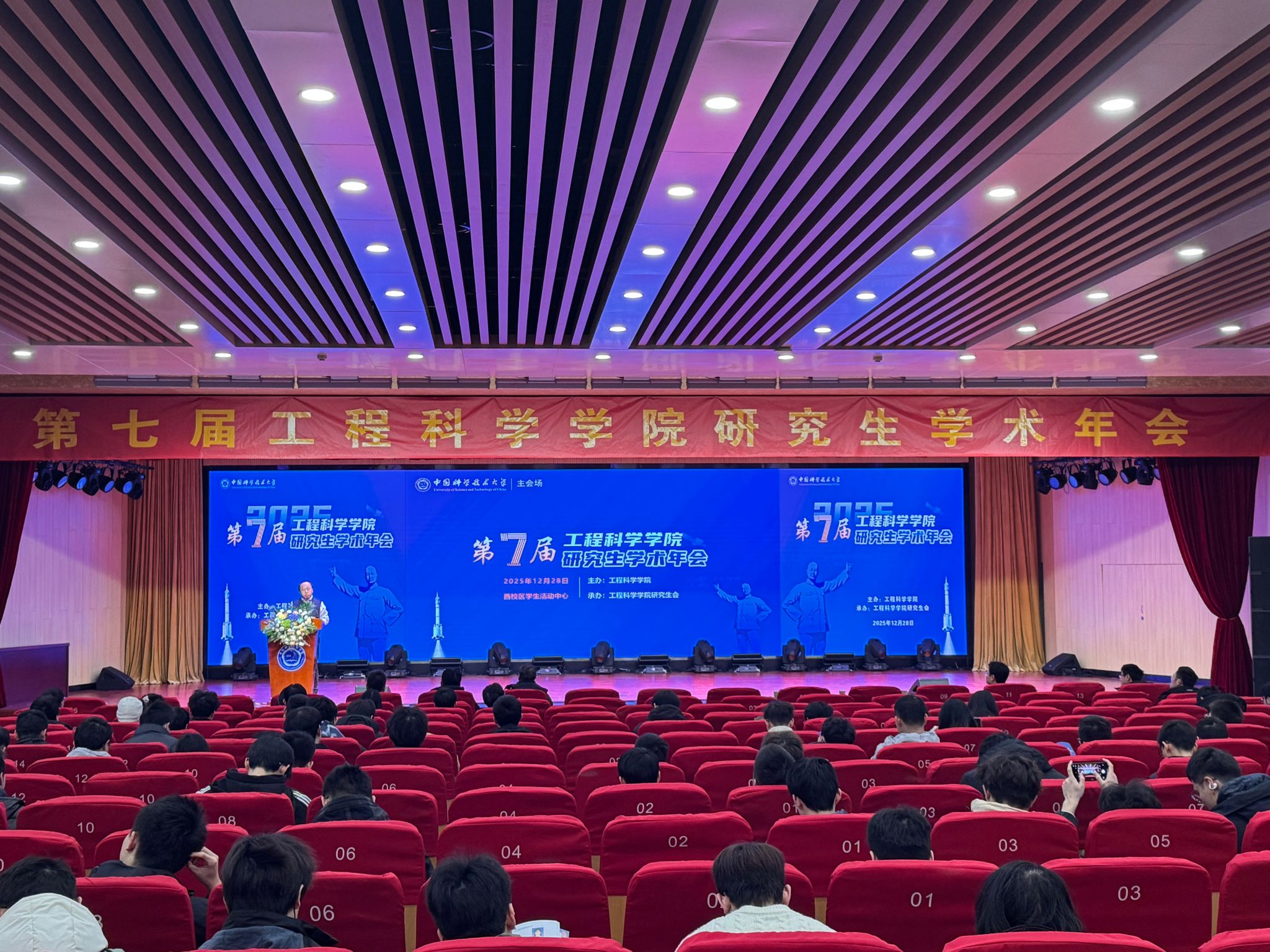 开幕式在西校区学生活动中心二楼礼堂举行,工程科学学院副院长李二强主持会议。执行院长吴恒安在致辞中鼓励同学们借助年会平台深入交流、拓展视野,并寄语学子在科研与产业融合中追求卓越。