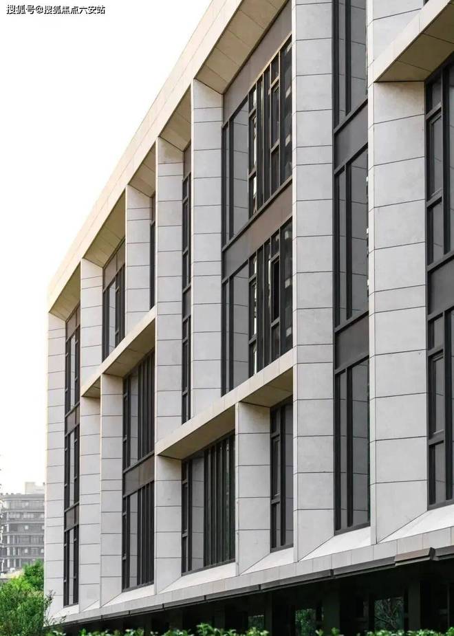 外立面以简洁硬朗的几何造型与线条来表现,充满现代感。通过完美的线条比例,以富于变化的矩形窗在立面中勾画出强烈、纯粹的几何装饰符号,还原建筑及空间的本真。用材选择立面浅色石材+有规律的铝合金玻璃窗+竖向金属装饰线条的整体设计。去繁化简,突出物质自身的存在。ᨏᨐ